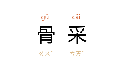 引南朝 梁 刘勰 《文心雕龙·章表》:“章以造闕,风矩应明;表以致禁,骨采宜耀。”南朝 梁 刘勰 《文心雕龙·风骨》:“若骨采未圆,风辞未练,而跨略旧规,驰騖新作,虽获巧意,危败亦多。”