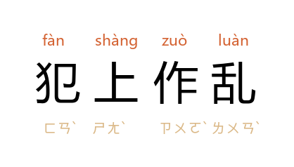 ⒈ 违抗尊长君上,为悖逆或叛乱之行。语出《论语·学而》:“不好犯上,而好作乱者,未之有也。”