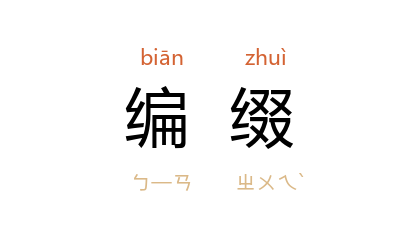 例如:「这本书是由历年发表在报章杂志的文章编缀而成。」