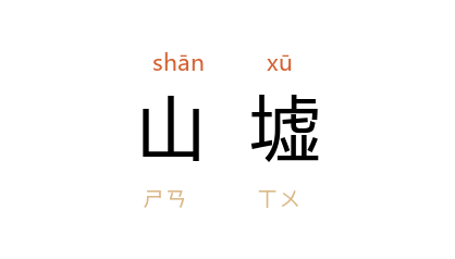 引南朝 梁 柳恽 《杂诗》:“山墟罢寒梅,园泽润朝暉。”宋 曾巩 《送周屯田序》:“今一日辞事还其庐,徒御散矣,宾客去矣……约居而独游,散弃乎山墟林莽僻巷穷閭之间。”