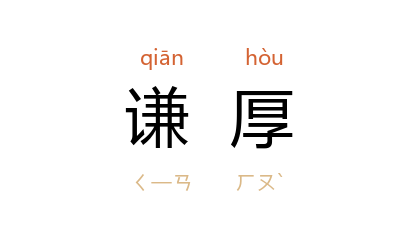 引《南齐书·陈显达传》:“显达 谦厚有智计,自以人微位重,每迁官,常有愧惧之色。”《醒世恒言·张孝基陈留认舅》:“又且为人谦厚,待人接物,一团和气,上下之人,无不悦服。”《平山冷燕》第六回:“出去相见时须要小心谦厚些。”