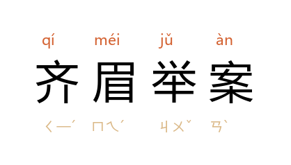 引元 于伯渊 《点绛唇》套曲:“言行功容,四德三从, 孟光 合配 梁鸿。怎教他齐眉举案劳尊重,俏书生别有家风。”清 钮琇 《觚賸续编·双双》:“譬如置铜山宝林於前,与之齐眉举案;悬玉带金鱼於侧,与之比肩偕老。”