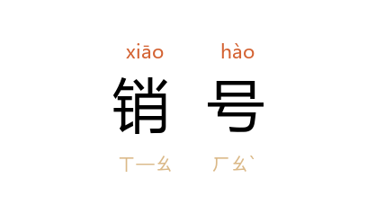 引清 黄六鸿 《福惠全书·莅任·设内外号簿》:“将簿送内宅,与内簿对同,于内簿前件上,打‘对同销号讫’小戳。”《人民日报》1976.7.12:“谁有了病,他脑子里立刻挂了号,一叫就到,不叫也到,啥时病除,啥时销号。”