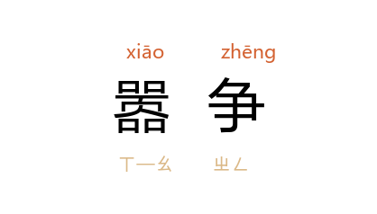 引《醒世恒言·三孝廉让产立高名》:“今人兄弟多分产,古人兄弟亦分产。古人分产成弟名,今人分产但嚣争。”《明史·张慎言传》:“孔昭 等伏地痛哭,谓 慎言 举用文臣,不及武臣,嚣争不已。”清 陈确 《答沉朗思书》:“故敢復布大意,餘未暇悉论,恐涉嚣争故也。”