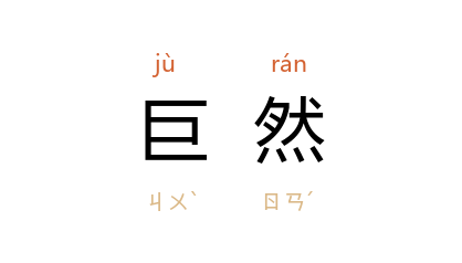 ⒈ 人名。五代、宋初江宁(今江苏南京)人。生卒年不详。开元寺僧,工画山水,师法董源,擅于表现「淡墨轻岚」、草本茂密的江南景色。后世将其与董源并称为「董巨」。该两人所创造的披麻皴法,不断为后代的山水画家所习用,且成为元朝以后山水画的主要画法。