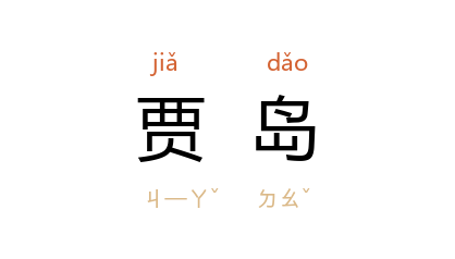 ⒈ 唐代诗人。字浪仙,一作阆仙,范阳(今河北涿州市)人。早年为僧,后还俗。曾任长江主簿。与孟郊齐名,有“郊寒岛瘦”之称。其诗多写荒僻冷落之景,表现愁苦之情。有《题李凝幽居》、《忆江上吴处士》、《访隐者不遇》等名篇。有《长江集》。