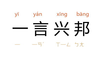 引《论语·子路》:「一言而可以兴邦,有诸?」唐·刘禹钖〈唐故相国李公集纪〉:「古所谓一言兴邦者,信哉!」