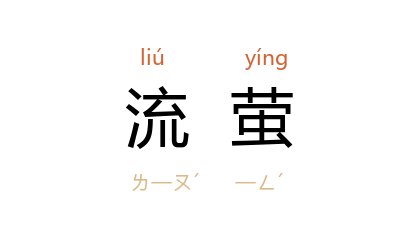 引南朝 齐 谢朓 《玉阶怨》诗:“夕殿下珠帘,流萤飞復息。”唐 杜牧 《秋夕》诗:“红烛秋光冷画屏,轻罗小扇扑流萤。”碧野 《金鸡菊》:“特别有趣的是,黑夜,有一点点流萤在草丛中穿飞。”