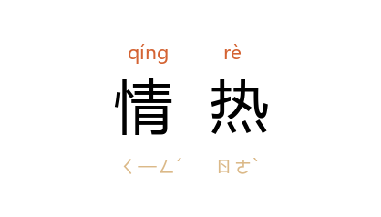 引叶圣陶 《倪焕之》十六:“母亲看儿子情热到这样程度,说得过分一点就是痴。”郭小川 《厦门风姿》诗:“哦,这不过是祖国的一地,却凝聚了祖国的多少豪气!山鹰从这里越过,都要鸣响它那饱含情热的风笛!”