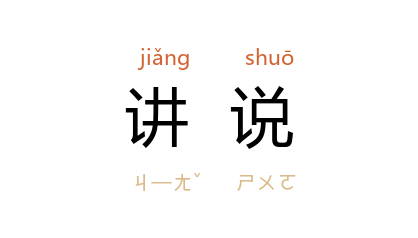 引《普曜经·说法门品》:“是为八百法曜法门,菩萨大士临降神时,为诸天子讲説此法。”宋 司马光 《涑水记闻》卷四:“﹝ 孙奭 ﹞幼好学,博通书传,善讲説。”沙汀 《风浪》:“工作同志正在讲说秩序的重要,希望大家不要抢着发言。”