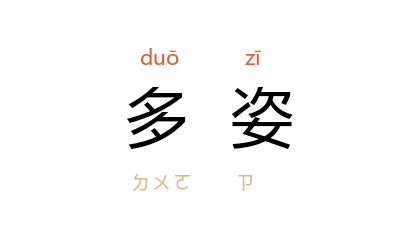 ⒈ 姿态多种多样。亦犹言丰富多彩。