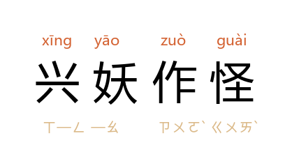⒈ 妖魔鬼怪到处闹事作乱。比喻小人兴风作浪,为非做歹。明·瞿佑也作「兴妖作孽」。
