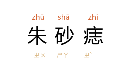 引《儿女英雄传·第一三回》:「这姑娘可是左右鬓角儿上,有米心大必正的两颗朱砂痣不是?」