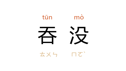 引《二十年目睹之怪现状·第一四回》:「那么那七八十吨的价,他一齐吞没了?」