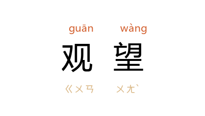 ⒊ 谓怀着犹豫不定的心情观看事态发展。