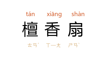 ⒈ 中国 特种工艺之一。用檀香木做骨架制成各式女用的精美折扇。用以搧风,香气扑鼻。主要产地 苏州、广州。苏 产多为绘画绢面; 广 产则以“拉花”(在檀香木上刻花)著称。