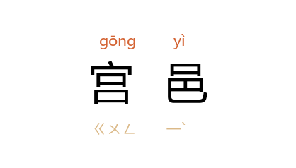 引汉 董仲舒 《春秋繁露·三代改制质文》:“迁宫邑,易官名,制礼作乐。”《宋书·周朗传》:“而犹倚灵假像,背亲傲君,欺费疾老,震损宫邑,是乃外刑之所不容戮,内教之所不悔罪,而横天地之间,莫之纠察。”