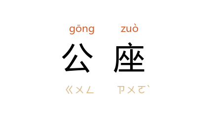 引《醒世恒言·灌园叟晚逢仙女》:“不想大尹忽然一个头晕,险些儿跌下公座。自觉头目森森,坐身不住。”清 王士禛 《池北偶谈·谈故一·中堂》:“﹝ 明 洪武 ﹞十八年,又命殿阁大学士、左右春坊大学士俱为翰林院官,故院中设阁老公座於上,而掌院学士反居其旁。”