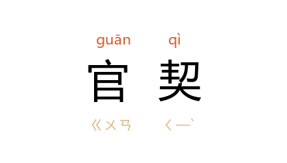 引《周礼·天官·宰夫》:“五曰府,掌官契以治藏。”孙诒让 正义:“官契,即小宰八成之书契也。”唐 王建 《赠胡泟将军》诗:“朱牌面上分官契,黄纸头边押勅符。”