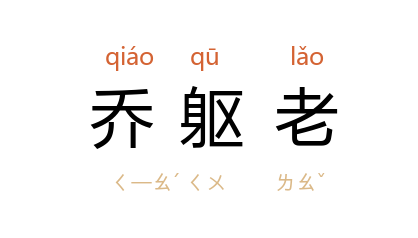 引元 关汉卿 《救风尘》第三折:“有那千般不实乔躯老,有万种虚嚣歹议论,断不了风尘。”元 无名氏 《争报恩》第一折:“我这里着眼偷瞧,教人耻笑,怎覰那乔躯老屈脊低腰,款那步,轻抬脚。”明 陈大声 《醉花阴·赏灯》套曲:“社火每衣冠新制,灯影下乔躯老人未识。”
