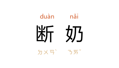 引叶圣陶 《未厌集·夜》:“近来,那孩子特别爱哭,犹如半年前刚断奶的时候。”沈从文 《新与旧·萧萧》:“萧萧 做媳妇时年纪十二岁,有一个小丈夫,年纪还不到三岁。丈夫比她年少九岁,断奶还不多久。”