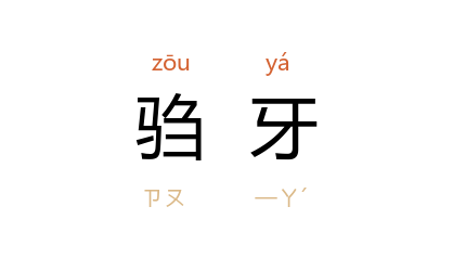 引《史记·滑稽列传》:“建章宫 后閤重櫟中有物出焉,其状似麋。以闻, 武帝 往临视之。问左右羣臣习事通经术者,莫能知……於是 朔(东方朔 )乃肯言,曰:‘所谓騶牙者也。远方当来归义,而騶牙先见。其齿前后若一,齐等无牙,故谓之騶牙。’”明 归有光 《题<异兽图>》诗:“呜乎,孰谓解衣盘礴称良吏,不识騶牙与麟趾。”清 鄂尔泰 《赠方望溪》诗:“《博物》但解辨鼮鼠,《搜神》或诧名騶牙。”