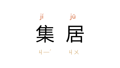 ⒈ 集居是人类在空间上所表现的活动规模,乃一复杂的系统,由自然界、人类、社会、结构物及交通网路五个元素交互作用而形成。