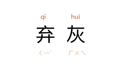 ⒈ 把灰烬弃在路上。殷代对弃灰于道者断其手,商君对弃灰于道者处黥刑用以立威治国。《韩非子·内储说上》:“殷之法刑弃灰于街者。子贡以为重,问之仲尼。仲尼曰:'知治之道也。夫弃灰于街必掩人……虽刑之可也。且夫重罚者,人之所恶也;而无弃灰,人之所易也。使人行之所易,而无离所恶,此治之道。'”汉桓宽《盐铁论·刑德》:“千仞之高,人不轻凌;千钧之重,人不轻举。商君刑弃灰于道,而秦民治。”宋苏轼《东坡志林·赵高李斯》:“商鞅立信于徙木,立威于弃灰。”或曰刑弃灰于道者,用以保马,以利耕战。