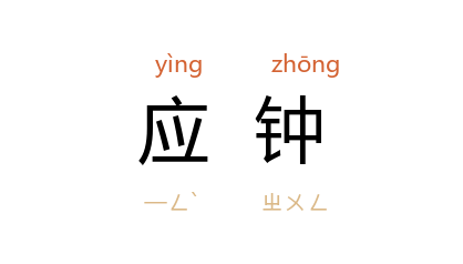 ⒈ 亦作“应鐘”。古乐律名。十二律之一。古人以十二律与十二月相配,每月以一律应之。应钟与十月相应。参见“十二律”、“十二月律”。见“应钟”。