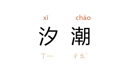 ⒈ 海洋水面由于月亮和太阳的引力作用而发生的周期性涨落现象。通常把白天涨落的叫潮,晚上涨落的叫汐。