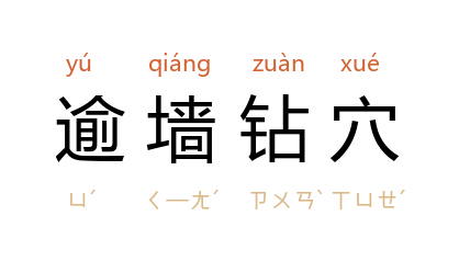 ⒉ 语本《孟子·滕文公下》:“不待父母之命,媒妁之言,钻穴?相窥,逾墙相从,则父母国人皆贱之。”后以“逾墙钻穴”指男女偷情。