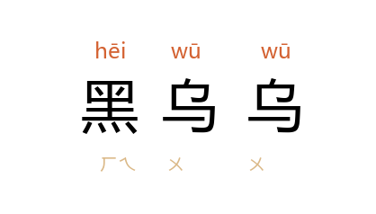 引《初刻拍案惊奇》卷三一:“丢儿 下厨房去盛饭,都是黑乌乌的,闻也闻不得,那里喫的?”魏巍 《火线春节夜》:“阵地上,山草燃烧过的地方,还是黑乌乌的。”杜鹏程 《平常的女人》:“她身边的大江里,停泊着许多黑乌乌的木船。”