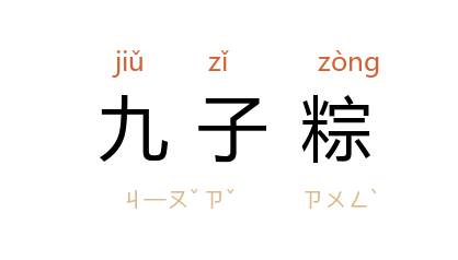 引《乐府诗集·清商曲辞六·月节折杨柳歌五》:“折杨柳,作得九子粽,思想劳欢手。”唐玄宗 《端午三殿宴群臣》诗:“四时花竞巧,九子粽争新。”《山堂肆考》卷十一引 宋 王曾 《皇后阁帖子》诗:“争传九子粽,皇祚续千春。”