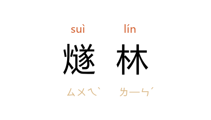 引晋 王嘉 《拾遗记·燕昭王》:“﹝ 西王母 ﹞与 昭王 游於 燧林 之下,説 炎帝 钻火之术。”五代 马彧 《赠韩定辞》诗:“燧林 芳草绵绵思,尽日相携陟丽譙。”清 朱舜水 《游仙诗》之三:“燧林 路伊邇,芳草思悠哉。”