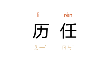 引宋 陆游 《老学庵笔记》卷三:“范丞相 觉民 拜参知政事时,歷任未尝满一考。”柯蓝 《火车上的少校》:“余同志 一九四二年参加革命,历任部队班排长等职。”