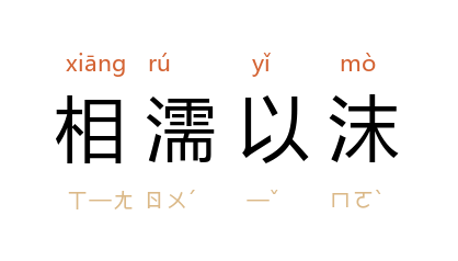 引《庄子·大宗师》:「泉涸,鱼相与处于陆,相呴以湿,相濡以沫。」