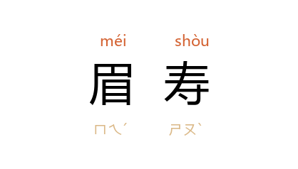 ⒈ 长寿。人年老时,眉毛会长出几根特别长的毫毛,为长寿的象征,故称为「眉寿」。