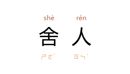 ⒈ 官名。战国及汉初王公贵人私门之官。仆从;差役。宋·元以来俗称显贵子弟为舍人。