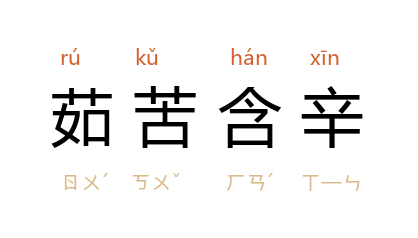 ⒉ 也作“茹苦含酸”、“含辛茹苦”