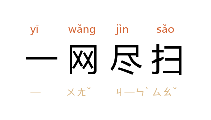 ⒈ 犹一网打尽。 宋 叶绍翁 《四朝闻见录·虎符》:“﹝ 韩侂胄 ﹞始与 自强(陈自强 )谋, 自强 荐 林行可 为諫议大夫,欲於诛 韩 日上殿,一网尽扫 象祖(钱象祖 )以下出国门。