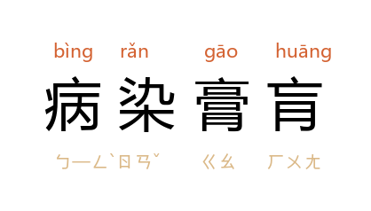 引元·范居中〈金殿喜重重·风雨秋堂套·赚〉:「真个崔张不让,命该雕丧,险些病染膏肓,此言非妄。」