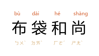 ⒈ 五代的一位高僧。法名契此,又号长汀子。明州奉化人。以神异著称,常用杖背负一只布袋入市,故称为「布袋和尚」。因他圆寂前说了「弥勒真弥勒,分身千百亿,时时示时人,时人自不识。」时人认为其为弥勒的化身。相传在中国多数佛教寺院里所供奉的大肚弥勒,即为他的造像。