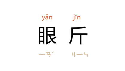 引金 董解元 《西厢记诸宫调》卷八:“鶯鶯 那里怎安稳,覷着自家般丈夫下得随人逃奔,短命的孩儿没眼斤!”凌景埏 校注:“眼斤,就是‘眼睛’。”