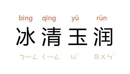 ⒈ 形容岳父的品德洁白如冰雪,女婿的资质温润如美玉。典出后以冰清玉润作为岳父与女婿的美称。简称为「冰玉」。