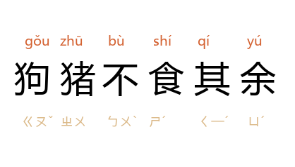 ⒈ 谓猪狗亦鄙薄其人,不食其所余。极言人品之低下。亦作:狗鼠不食汝余、狗彘不食汝余、狗彘不食其余。