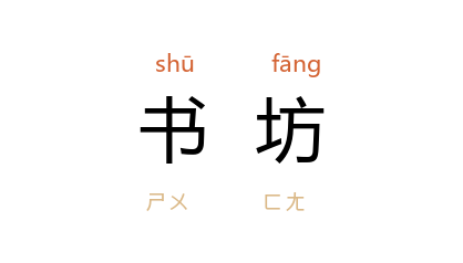 ⒉ 旧时印刷并出售书籍的地方。五代时书肆,北宋时书林、书堂,南宋时书棚以及明清时书铺,皆泛称书坊。