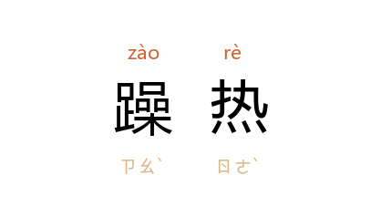 引《文明小史·第四八回》:「无奈其时正是初秋天气,忽然躁热起来。」