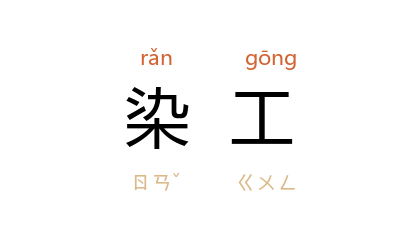引《北史·卢恺传》:“时染工 王神欢 者,以赂自进,冢宰 宇文护 擢为计部下大夫。”宋 洪迈 《夷坚乙志·董染工》:“乡里 洪源 董 氏子,家本染工。”明 艾伯衡 《染说》:“炽之,沤之,暴之,宿之,淫之,沃之,涂之,挥之,渍之以为法。一入,再入,三入,五入,七入以为候,天下染工一也。”清 唐甄 《潜书·尚治》:“陈友谅 之父好衣褐,破 蘄,不杀衣褐者……帛不入境,染工远徙。”