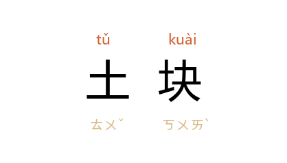 引《礼记·明堂位》“土鼓蕢桴” 唐 孔颖达 疏:“蕢桴,以土块为桴。”北魏 贾思勰 《齐民要术·耕田》:“立春后,土块散,上没橛,陈根可拔。”《南史·贺瑒传》:“乃以土块加其心上,俄顷而苏。”