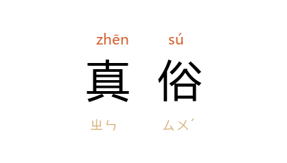 ⒈ 佛教语。因缘所生之事理曰俗,不生不灭之理性曰真。出世为真,入世曰俗,即出家在家之意。
